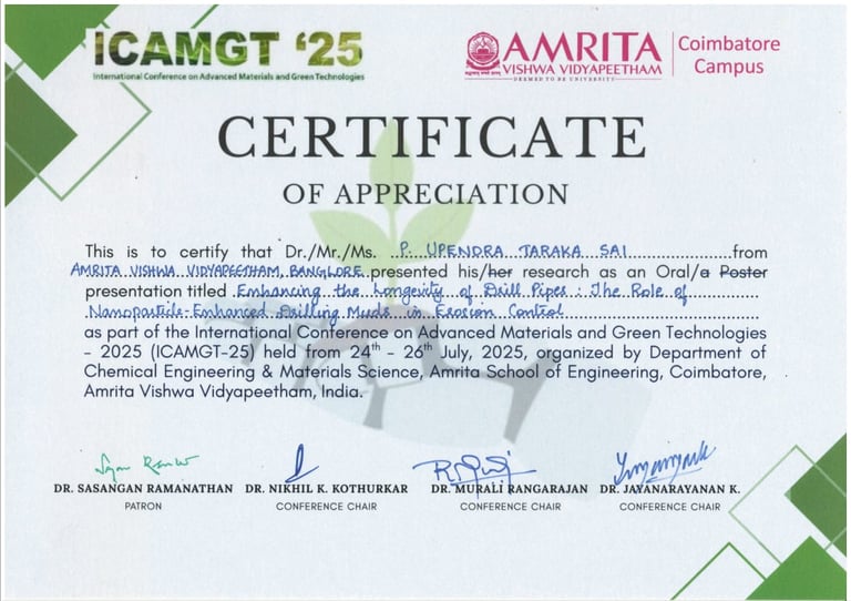 Enhancing the Longevity of Drill Pipes: The Role of Nanoparticle-Enhanced Drilling Muds in Erosion Control | ICAMGT'25, Presenter