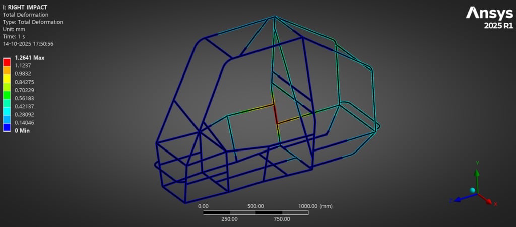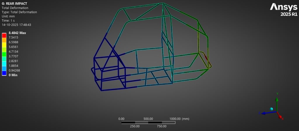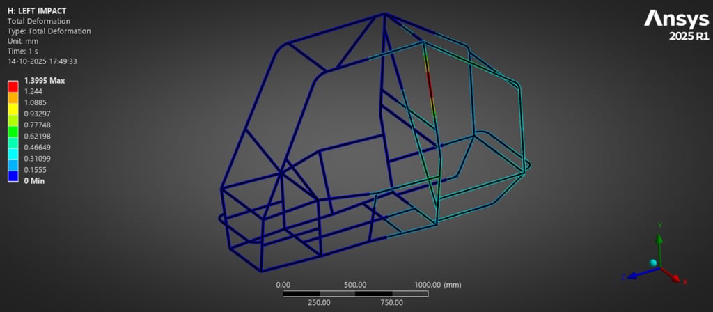 Ensured a minimum factor of safety (FoS ≥ 2.09) under critical impact conditions through iterative structural validation.